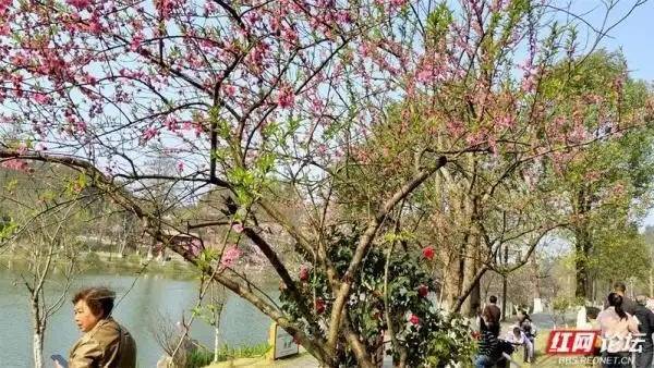 行至五柳湖畔,又是一番别样景致。湖水澄澈如镜,倒映着蓝天、白云、桃花与古建;岸畔陋室青瓦,亭台雅致,尽显江南园林的婉约之美。春风拂过湖面,波光粼粼,落花漂浮,与水中云影相映成趣。漫步湖畔,看游人笑语盈盈,听风过林梢;品一碗清香四溢的桃花源擂茶,佐以特色小吃,唇齿间留香,心底尽是温润。这方水土孕育的烟火滋味,是桃花源独有的温柔。