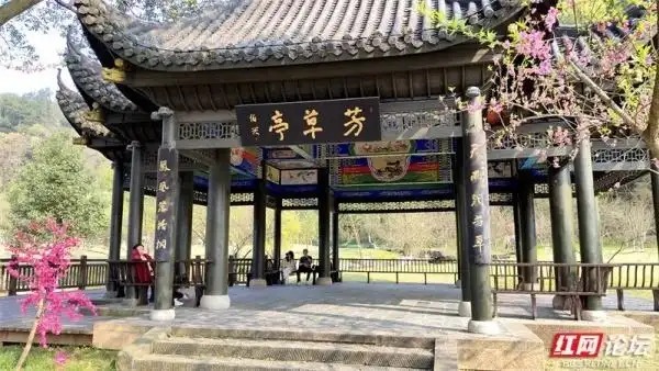 桃花山是桃花源的文脉所在,青山之上,古建林立,碑刻琳琅。方竹亭藏着自然奇趣,亭外翠竹看似圆润,触手方知棱角分明,暗合天圆地方的哲思;碑廊之中,王维、李白、苏轼等历代文人的题咏石刻历历在目,笔墨留香,诉说着千年以来文人雅士对这片净土的向往与眷恋。拾级而上,登至玄亭远眺,漫山春色尽收眼底:桃花灼灼,青山如黛,亭台楼阁点缀其间,如一幅徐徐展开的水墨丹青。